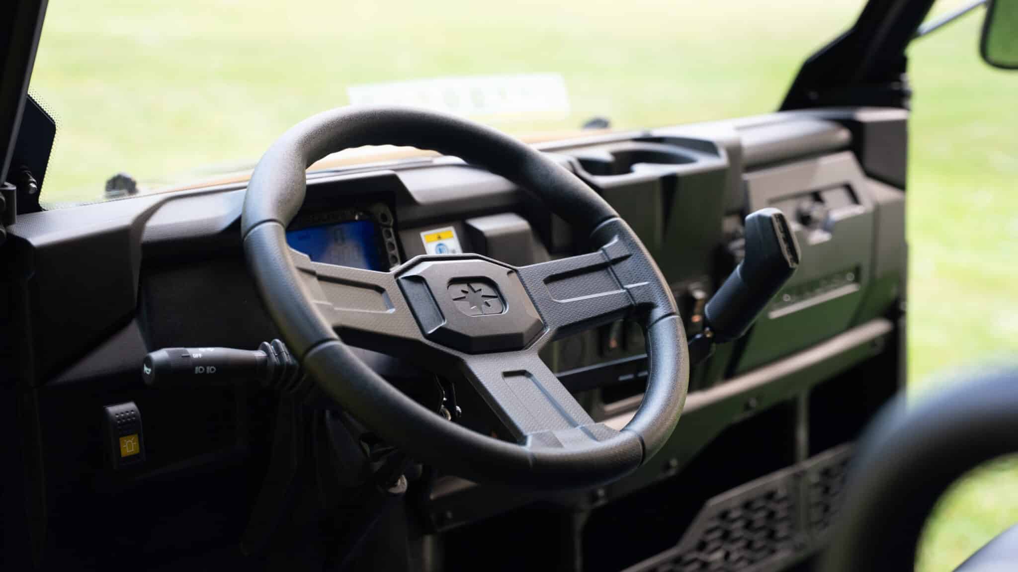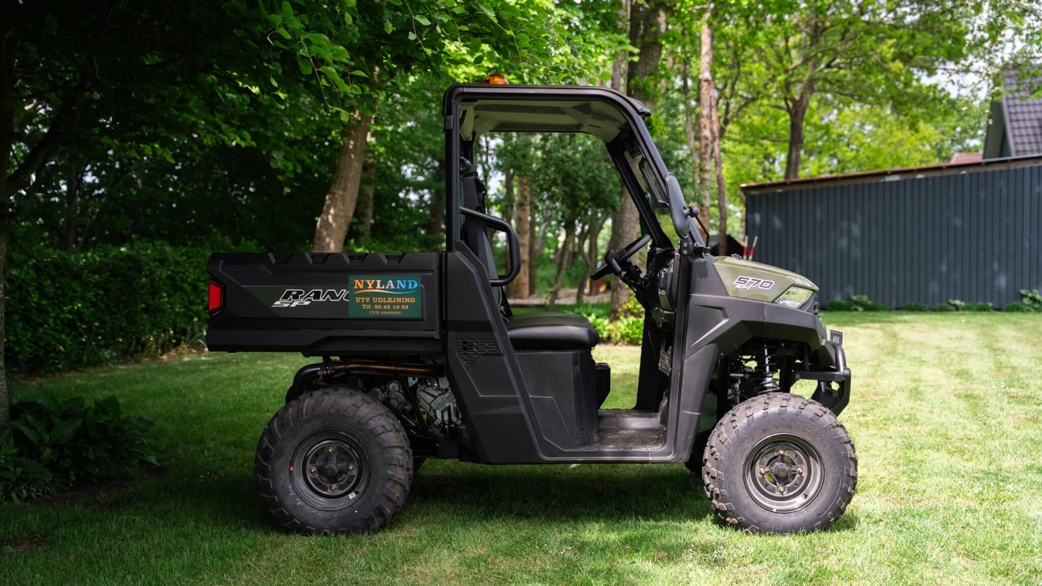 Polaris Ranger 570 er udstyret med en benzinmotor og byder på høj ydeevne i selv krævende terræn. Med en frihøjde på 279 mm, en venderadius på kun 3,9 meter, uafhængig affjedring og firehjulstræk er den ideel til kørsel på marker, enge, i skovområder og andre udfordrende underlag.