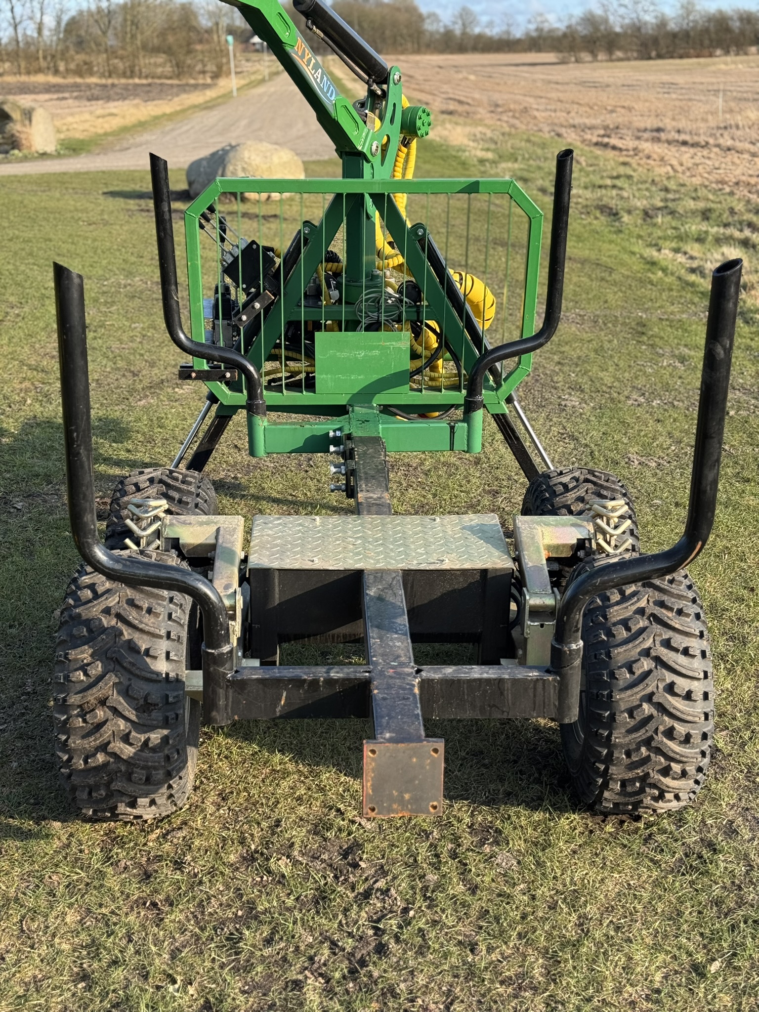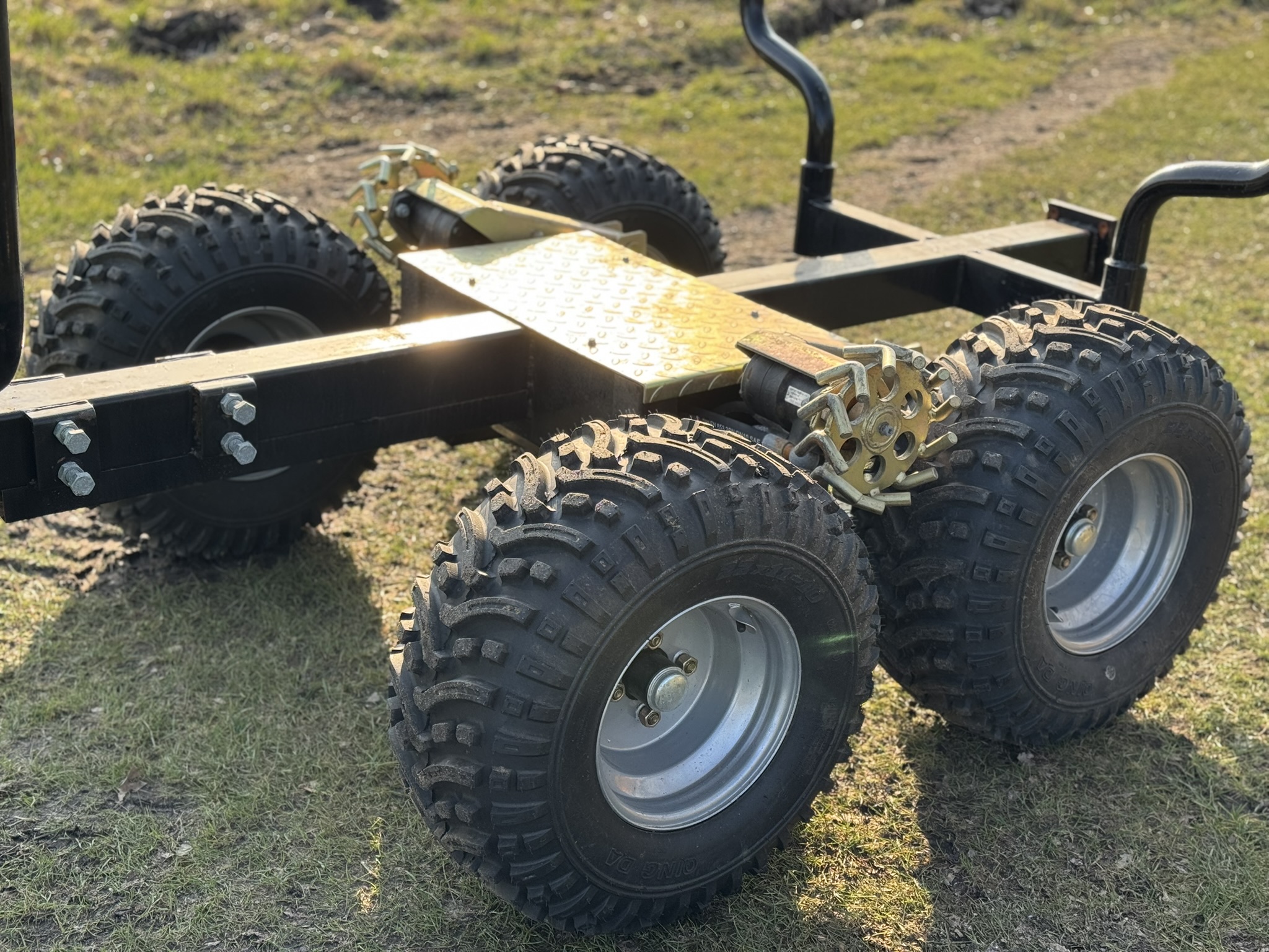 For optimal fremkommelighed er vognen udstyret med hydraulisk hjultræk, som betjenes via trådløs fjernbetjening, samt rammestyring og 40 cm frihøjde. Kan trækkes af ATV, UTV eller andre maskiner med trailerknop.